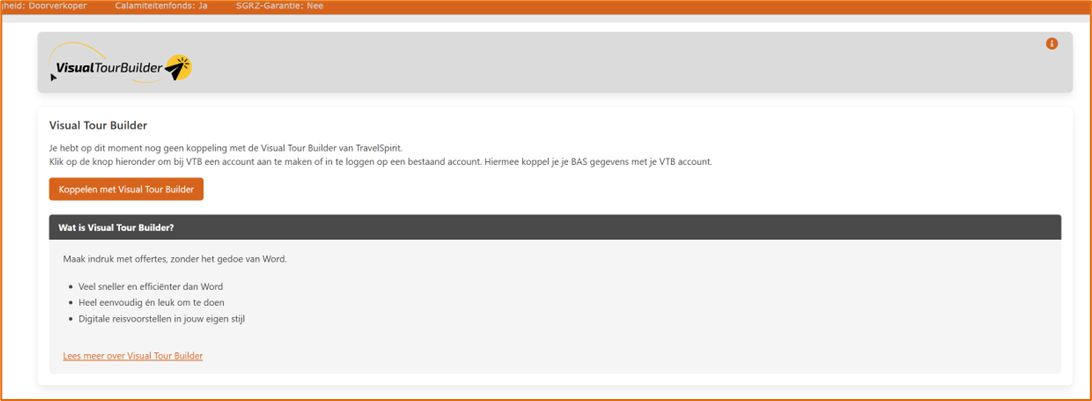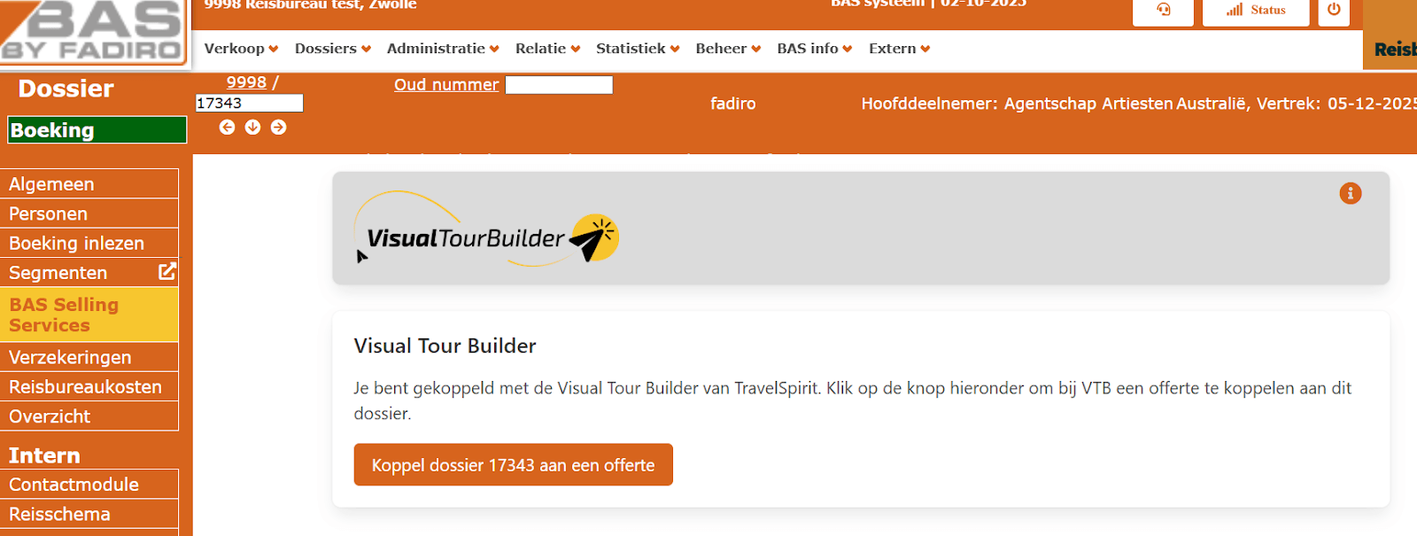 Met de koppeling tussen BAS en Visual Tour Builder (VTB) kun je eenvoudig reisvoorstellen vanuit VTB koppelen aan dossiers in BAS.
