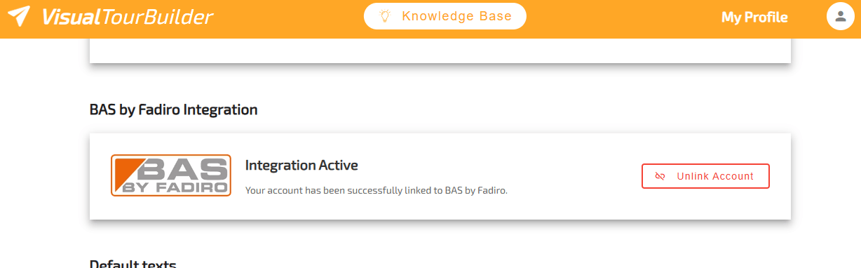 - In Visual Tour Builder kun je onder My Profile terugvinden dat de koppeling actief is.