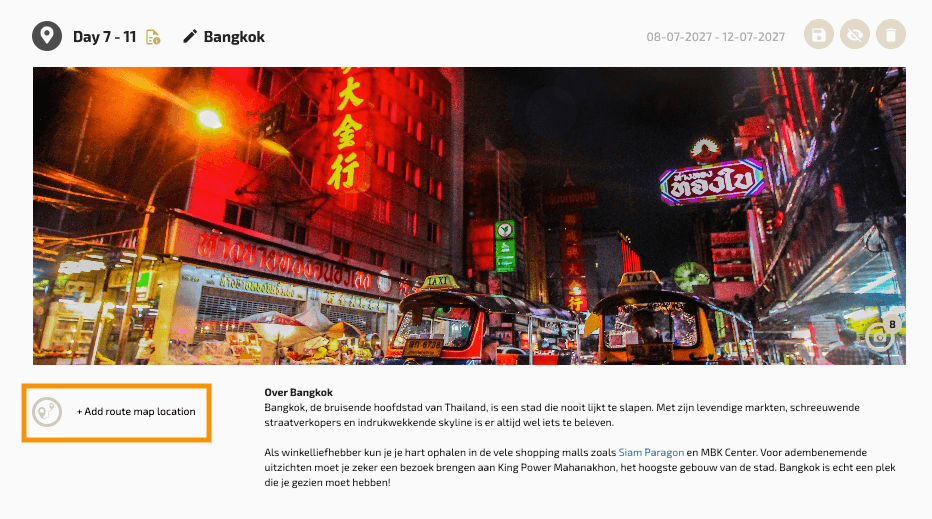 To visually showcase your trips on a map, you can add locations to your route map.
