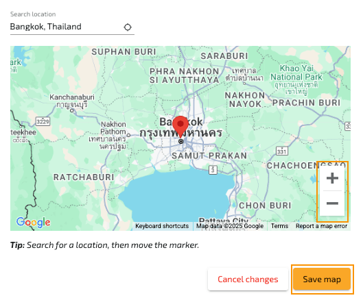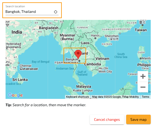 Tip: Want to quickly add the exact location of your accomodation? Search for the accomodation in Google Maps, copy the full address, and paste it into the location field in VTB. The marker will automatically appear at the correct spot on the map.