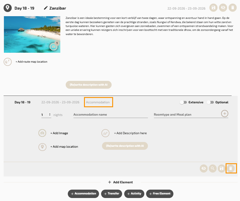 Note: This setup works in a destination block without accommodation. If you want to learn how to create such a block, see: How to add an introduction to a destination without adding an extra travel day.