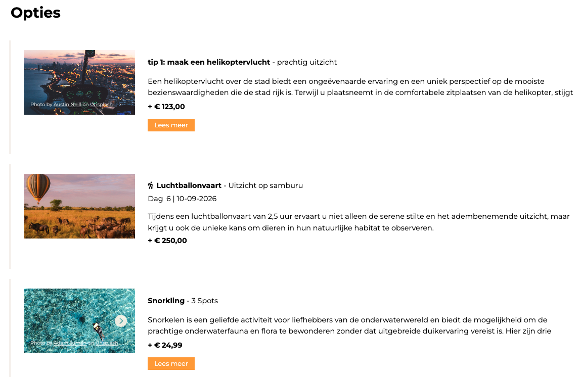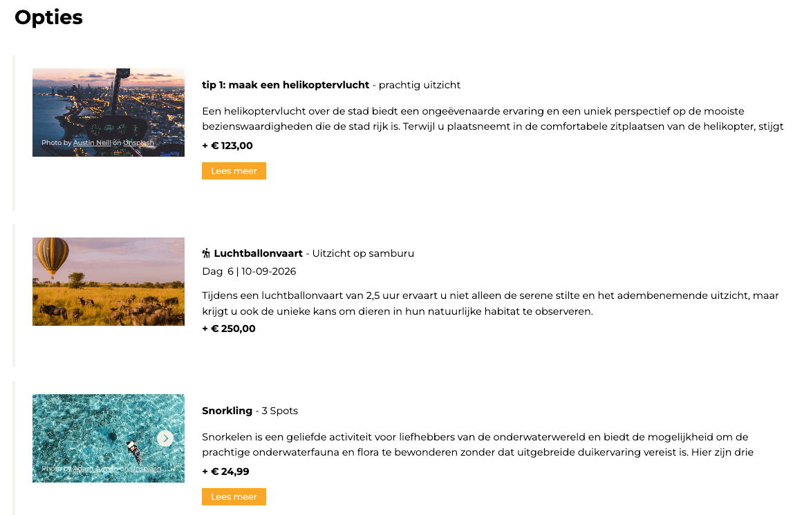 This keeps the itinerary clear while still allowing you to showcase optional and included experiences.